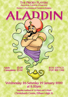 Aladdin lived in China with his poor old mother Widow Twankey. One day a rich old man called Abanazar comes to see Aladdin and tells him he is his long-lost uncle, he gives Aladdin a magic ring and asks him to do a favour in return. Abanazar tells Aladdin he has to go deep into a cave and find him an old lamp.