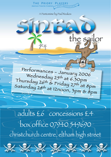 When the Princess is abducted by the evil magician Vazar. With the promise of wealth and her hand in marriage, Sinbad sets sail on his rescue mission with his mother, Dame Semolina Sinbad, Monty the Monkey, the Captain and Mr Mate.