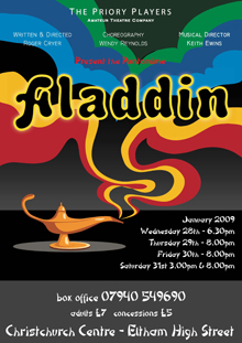 Aladdin is living a happy but poor life with his lazy brother Wishee Washee and his Mum Widow Twankey, who runs the Chinese laundry in Old Pekin. Aladdin falls in love with Princess Jasmine the daughter of the Empress of China, but being poor he has no chance of winning her hand. They are visited by the evil Abanazar pretending to be Aladdin’s long lost uncle.