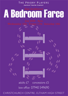 The play is set in three bedrooms which are all visible at the same time, moving from bedroom to bedroom as the story unfolds over one night and the following morning.